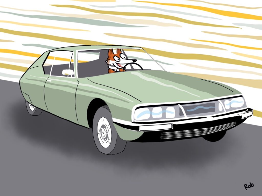 I create cartoon illustrations of classic cars that are anything but ordinary.
